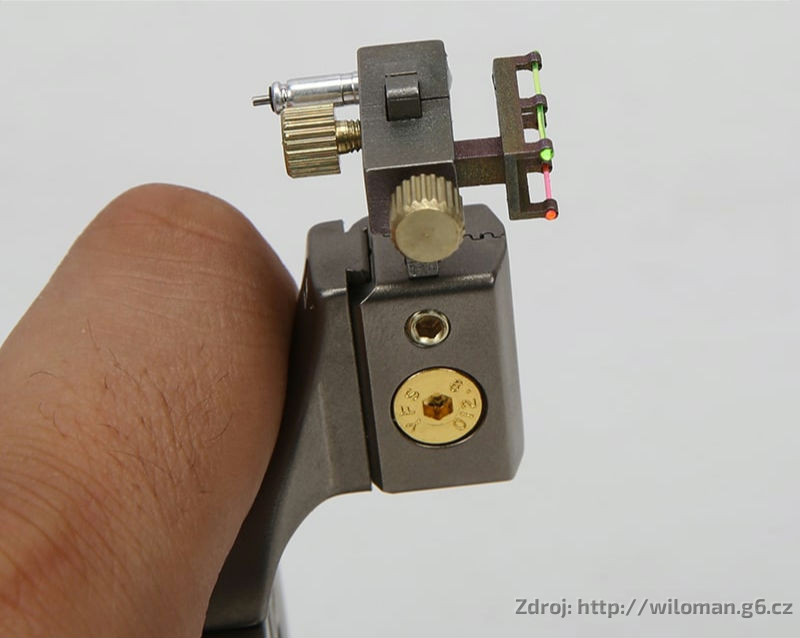 - Natažená guma, při výklopném praku o úhel 90ST, slouží jako prodloužení celkové pochy mířidla a tím je i vyšší přesnost.